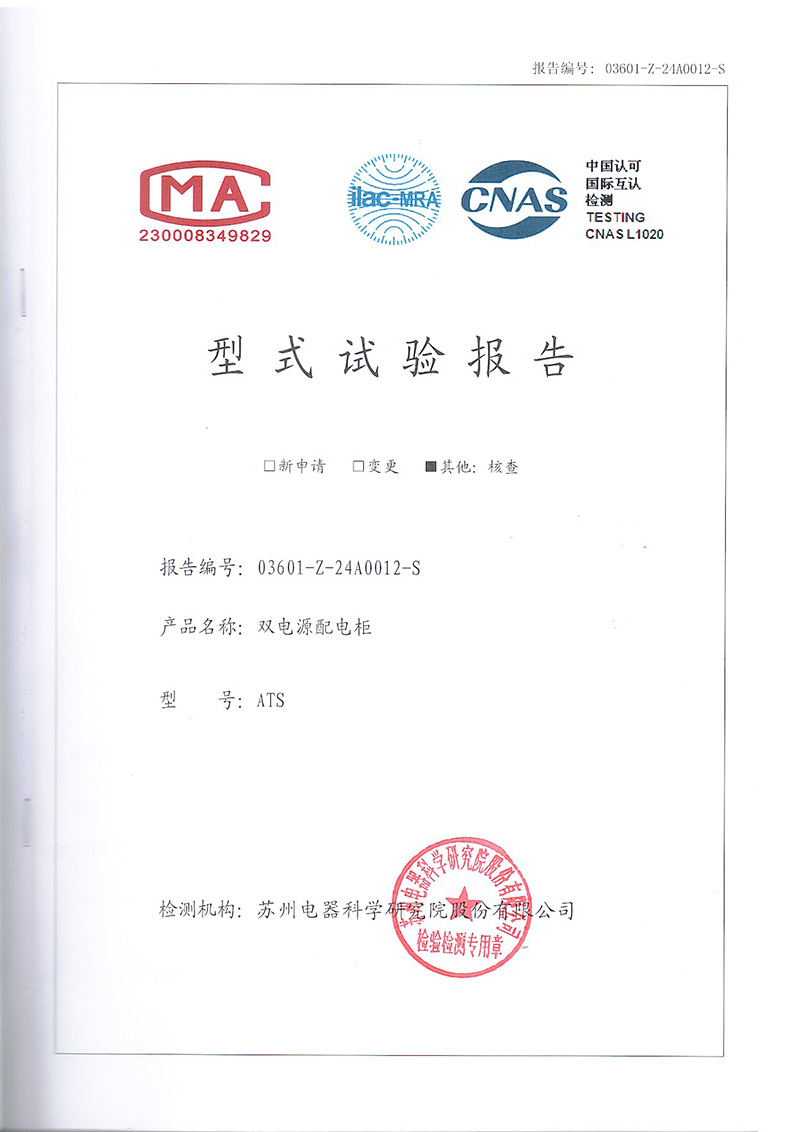 ATS雙電源配電柜 試驗(yàn)報(bào)告1
